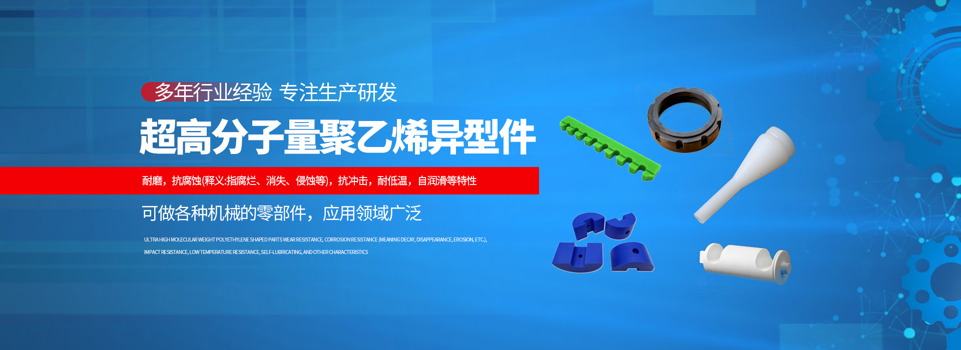 1、運輸機械導軌、傳送帶、傳送裝置滑塊座、固定板、流水生產線計時星輪2、食品機械星形輪、送瓶計數螺桿、灌裝機軸承、抓瓶機零件、墊圈導銷、氣缸、齒輪、輥筒、鏈輪手柄3、造紙機械吸水箱蓋板、偏導輪、刮刀、軸承、葉嘴、過濾器、儲油器、防磨條、毛氈清掃機4、紡織機械開幅機、減振器擋板、連接器、曲軸連桿、打梭棒、掃花針、偏桿軸承、擺動后梁5、建筑機械農業推土機推上板料里、自卸卡車廂內料、拖拉機梨刀內襯6、化